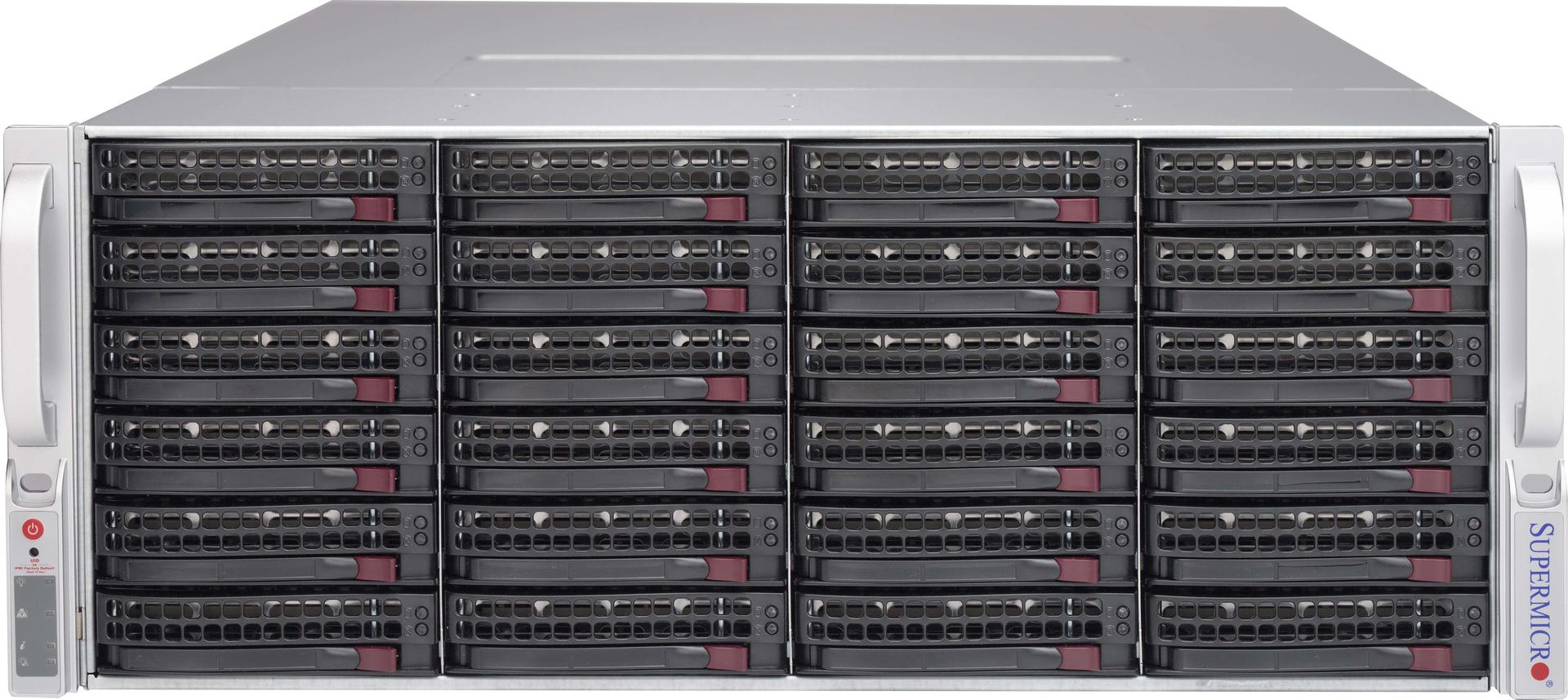 Supermicro CSE-847E2C-R1K23JBOD. Geïnstalleerde opslag-drive: HDD. Type behuizing: Rack (4U), Apparaatklasse: Grote bedrijven. Aantal storage drives ondersteund: 44, Ondersteunde opslagstationinterfaces: SATA, Opslagschijf afmetingen ondersteund: 3.5". Breedte: 437 mm, Diepte: 699 mm, Hoogte: 178 mm, Gewicht: 43,1 kg. Kleur van het product: Zwart