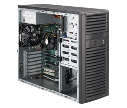 Supermicro SuperWorkstation 5037A-T. Type behuizing: Midi-Toren. Chipset moederbord: Intel® P67 Express, Processor socket: LGA 1155 (Socket H2). Ondersteunde geheugen types: DDR3-SDRAM, Aantal geheugenslots: 4, Maximum intern geheugen: 32 GB. Opslag schijf-interface: SATA. Aantal Ethernet LAN (RJ-45)-poorten: 2. Netvoeding: 500 W